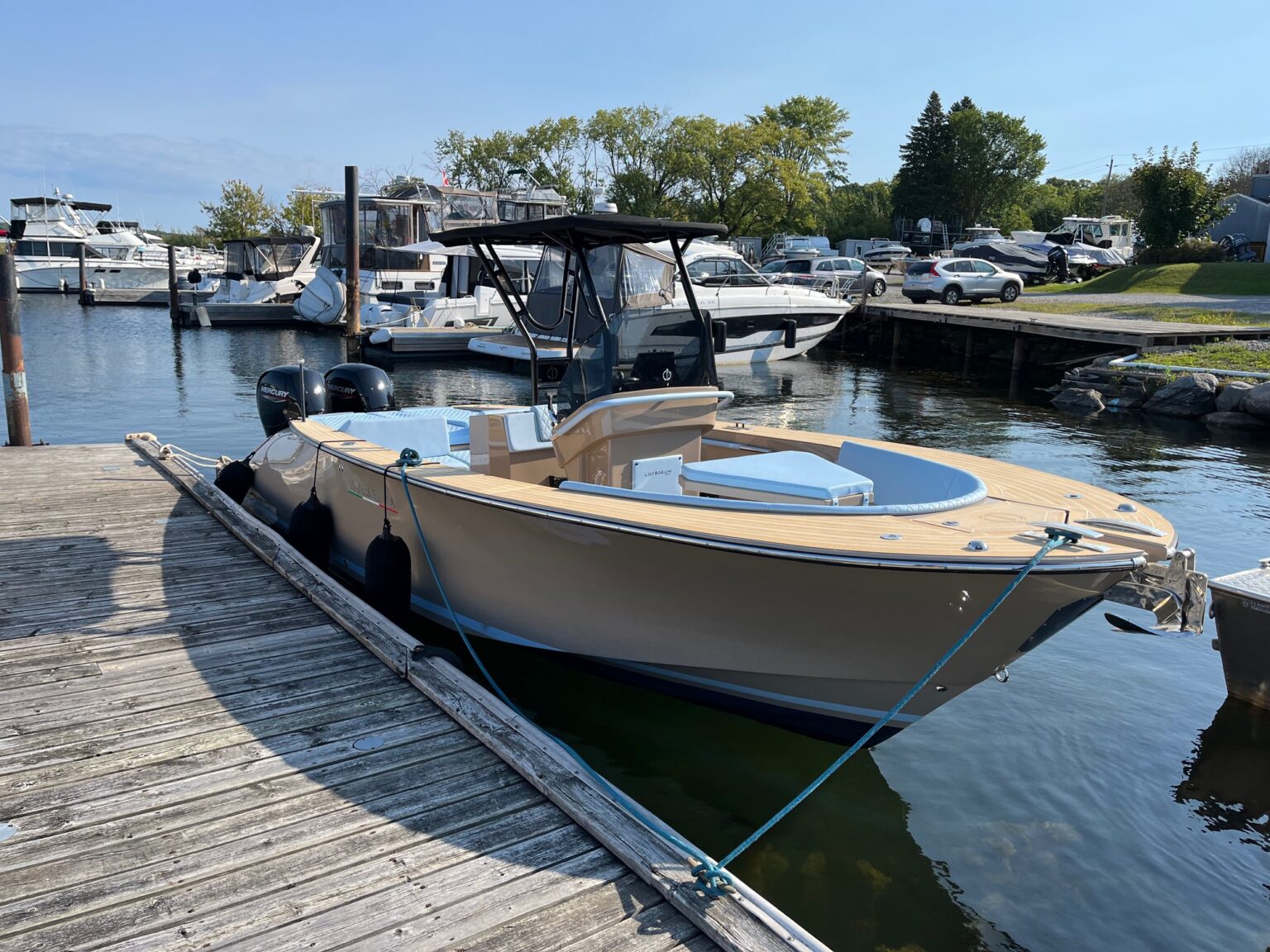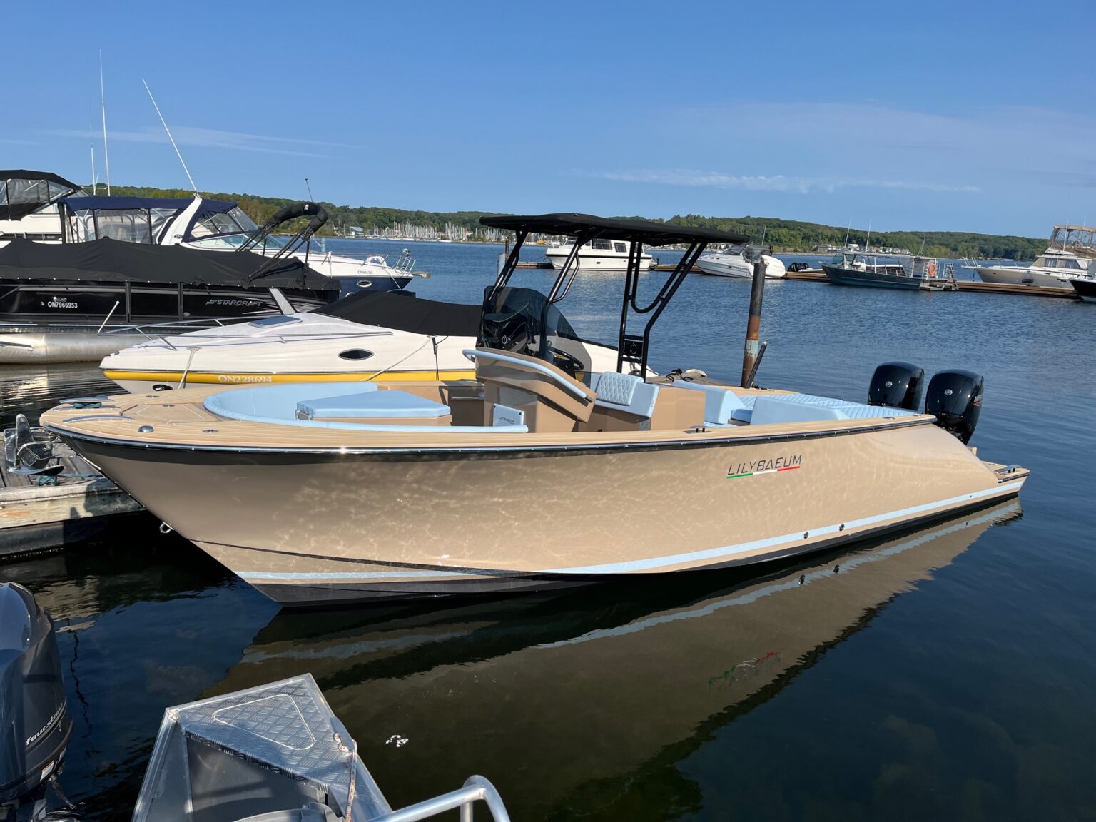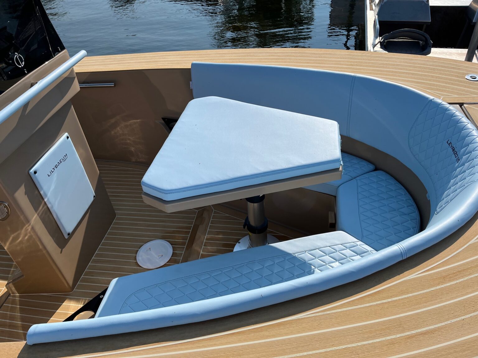 The full-open layout optimizes every nook and cranny of the hull, offering a luxurious and immersive marine experience. The strategic positioning of the outboard motors enhances the vessel’s functionality, paving the way for a spacious bathing platform that parallels the usability and surface area found on similarly sized units with inboard motors or stern drives.