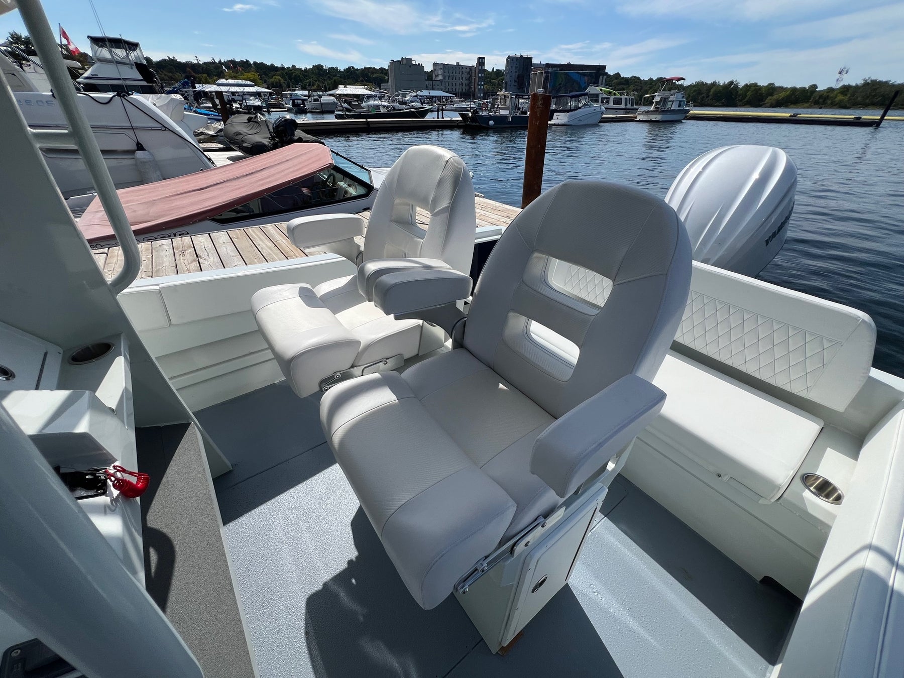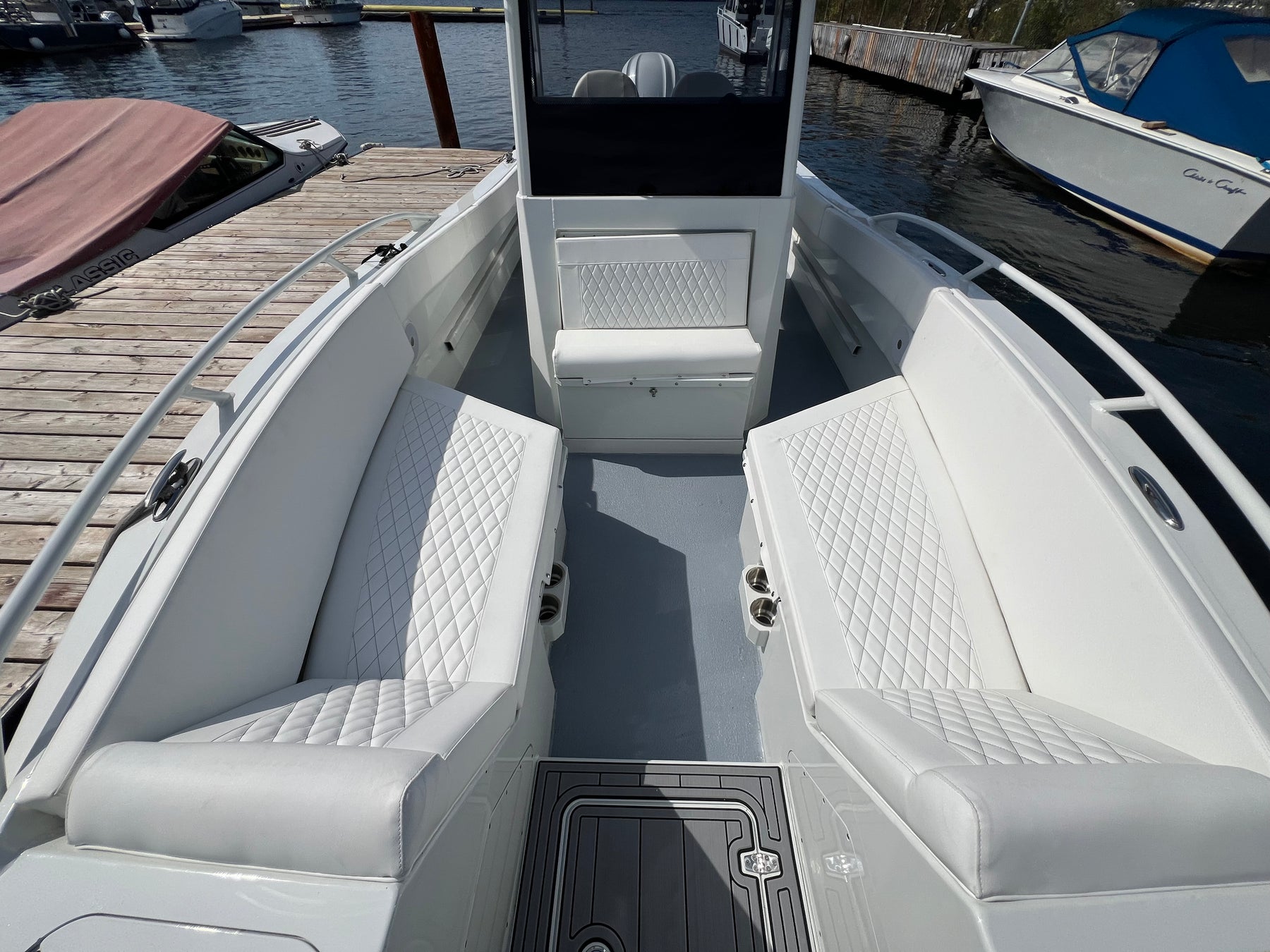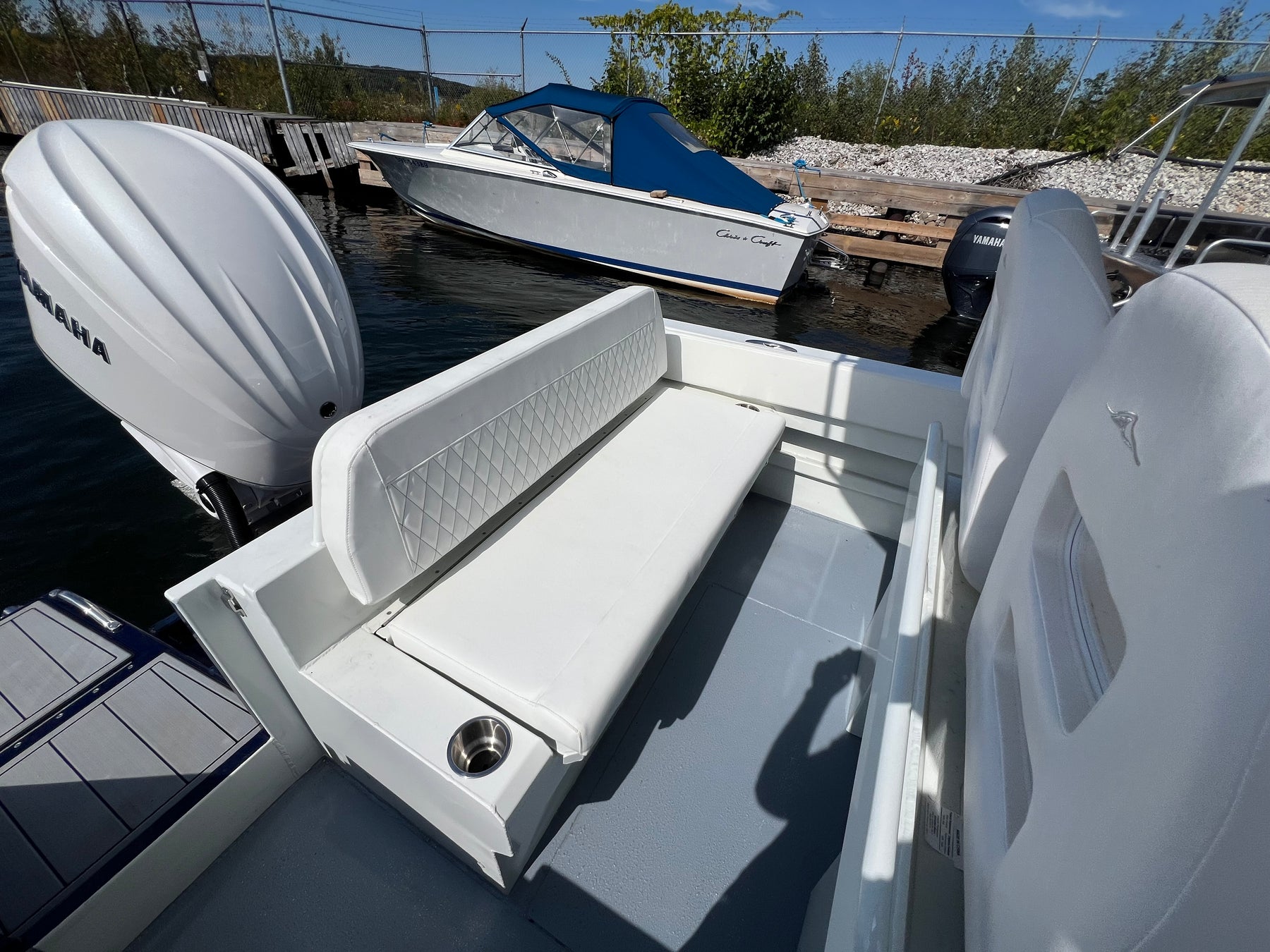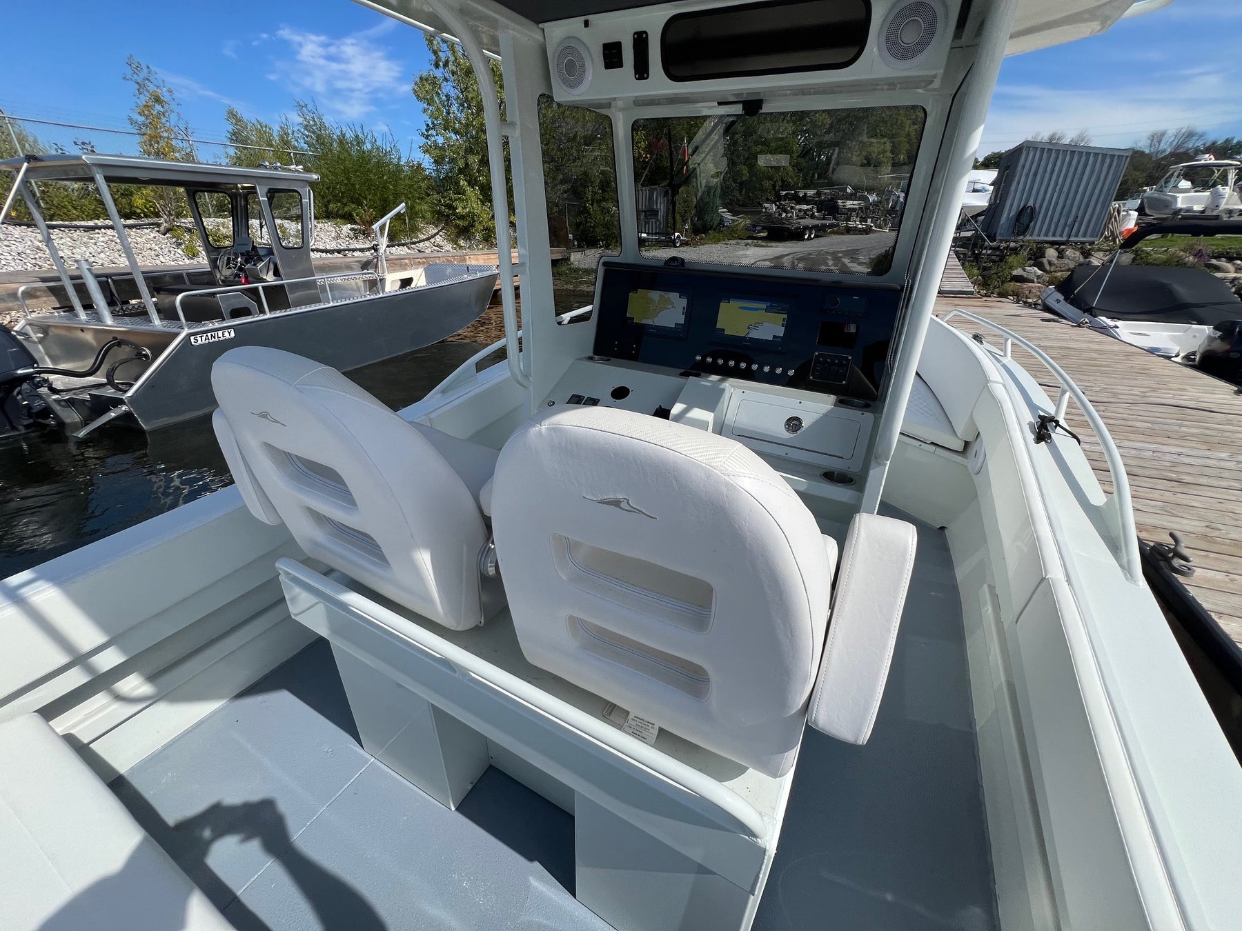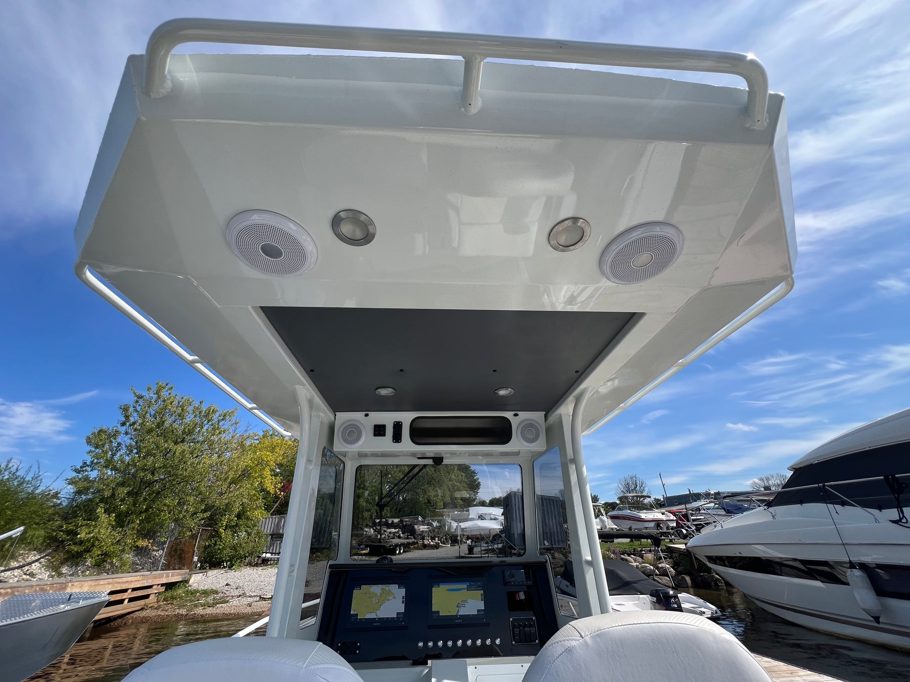 This Lighthouse is well optioned out with dual Garmin 12 inch displays, Lenco trim tabs, fusion sound system, full interior lighting package, power front bow gate.