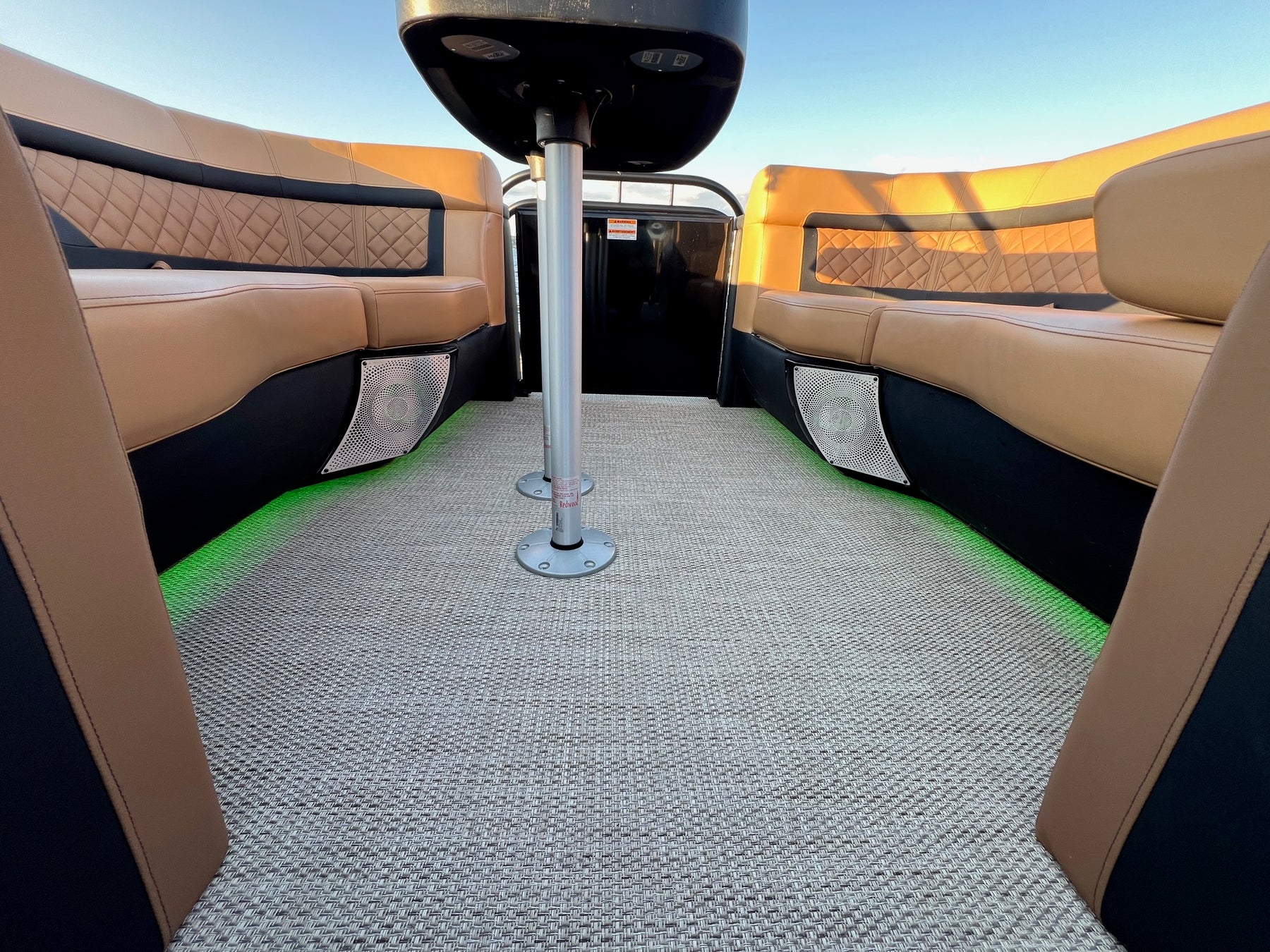 You need to check out this one-of-a-kind Tritoon, 2021 Godfrey AquaPatio 255. It's fully loaded and powered with a Mercury 400 Verado with only 108 hours. This Tritoon has been stored in a boathouse since new.