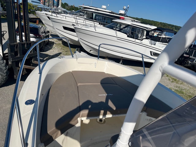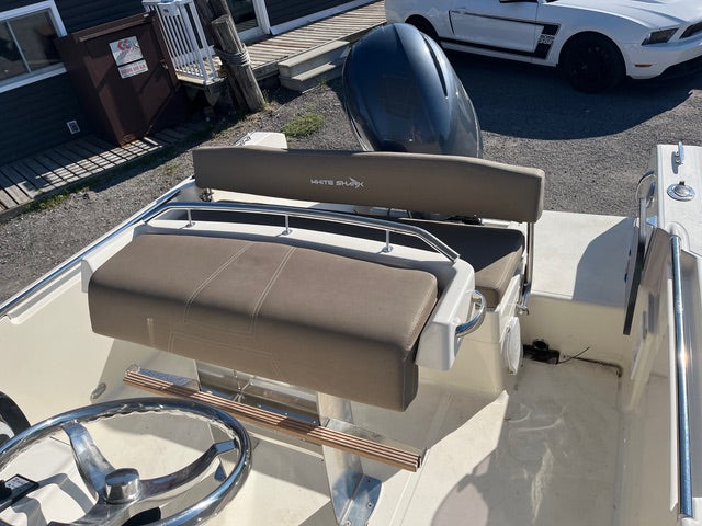 White Shark is a new line for Central Marine Midland and we’re so excited to have them, all the way from France! This boat is another excellent addition to our new White Shark range! This sleek 2022 210 White Shark Centre Console has great performance with a sporty hull & unobstructed deck plan for freedom of movement onboard. Don’t let its size fool you, measuring just under 6 meters this unit allows 7 people to sit on board with plenty of room for safe traffic onboard. Whether you want to sunbathe at the front or make way for a family dining area, this boat offers versatility and comfort all in a compact model. Powered with a 150 Yamaha & equipped with hydraulic steering, windlass, bow filler cushions and a trailer. This boat is sleek and powerful! Contact Central Marine for more details on this 2022 210 White Shark CC, or for more information on our White Shark boats.