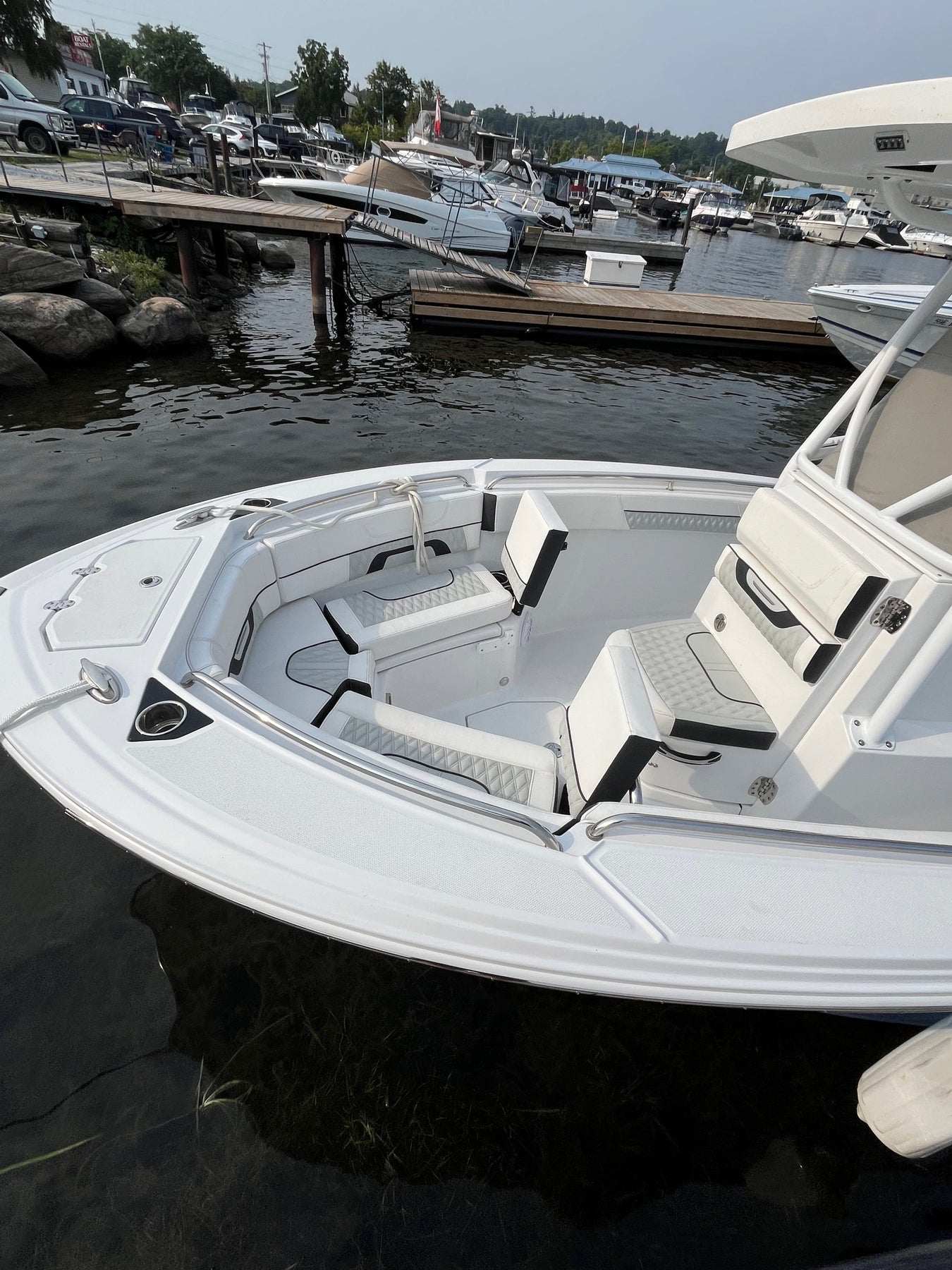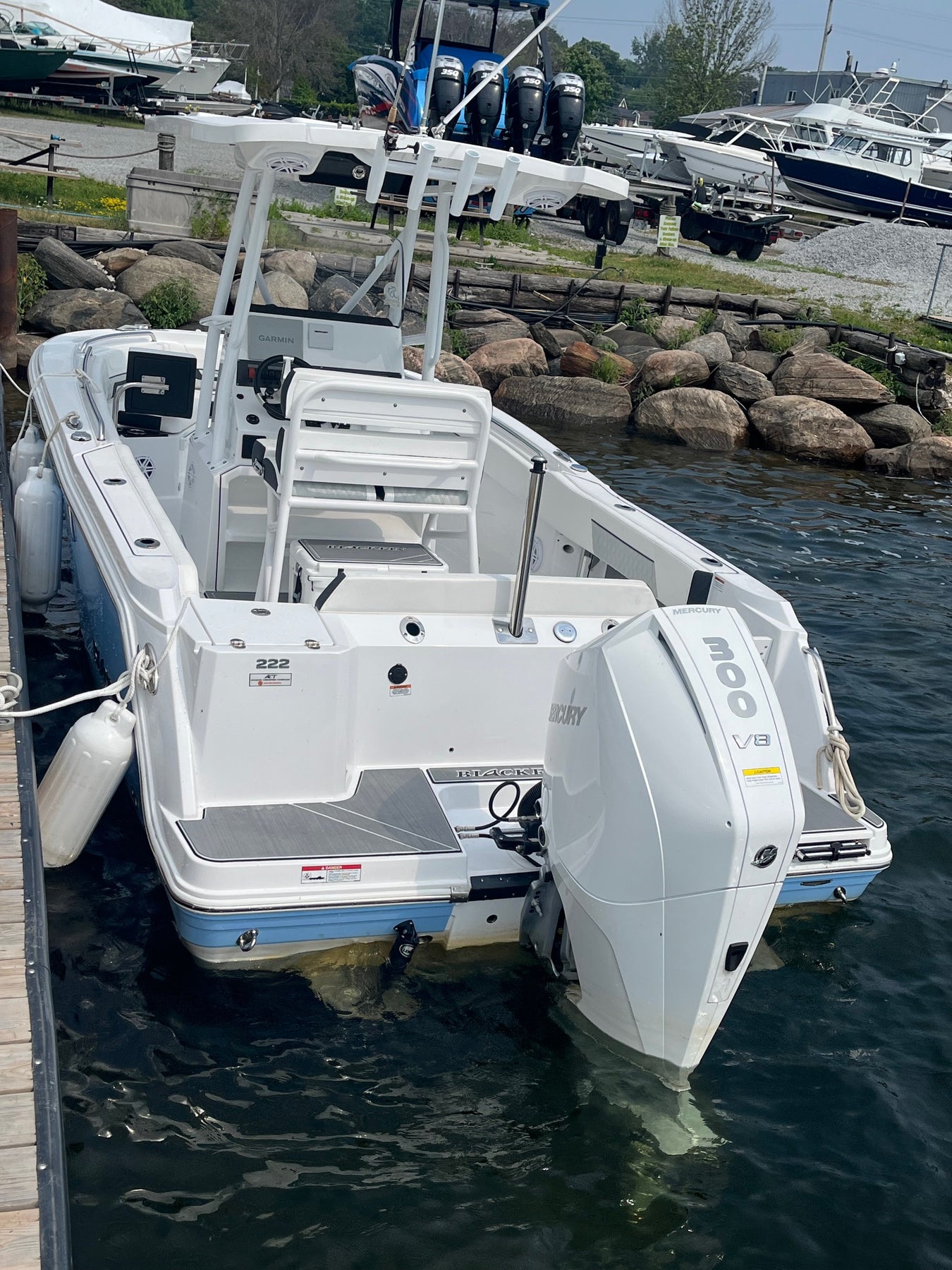 This 2023 Blackfin 222 Demo is absolutely not going to last. It's an incredible boat, powered with a 300 Mercury with only 22hrs and comes with a fully warranty. There is a pump out head, Garmin GPS, Fusion Stereo and lenco tabs. A trailer is available upon request. Get in touch with our Sales Team to get this Blackfin out on the water!