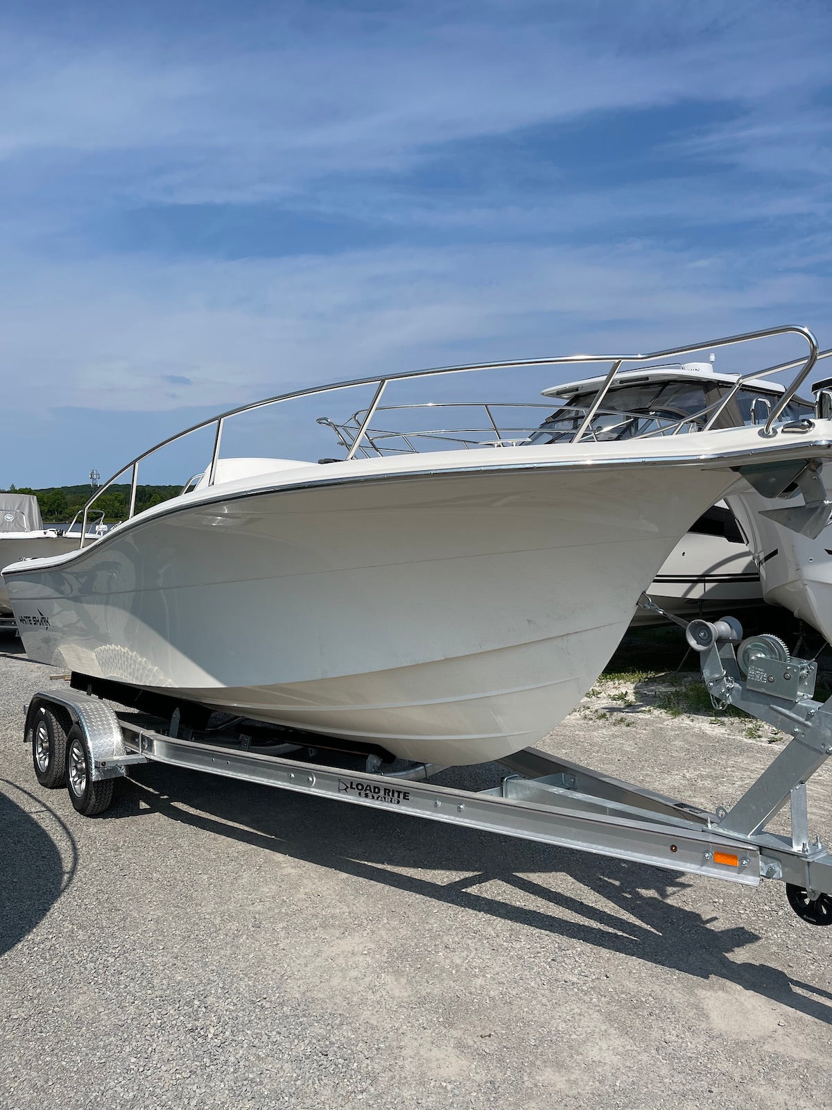 White Shark is a new line for Central Marine Midland and we’re so excited to have them, all the way from France! This boat features a deep v-hull and is ideal for Georgian Bay with its T-Top and YAMAHA 225HP. Its timeless racy line with exceptional marine behaviour will transport you quickly, comfortably and safely. Cruising, fishing, diving, water skiing, this boat is very versatile. This model has upgraded interior cushions with plenty of storage space under the console plus large bow cushions, high bow rails and bow pulpit for added safety. You won’t want to miss these new White Sharks! Contact Central Marine for more details on this 2023 White Shark 230 Centre Console or, or for more information on our White Shark boats.