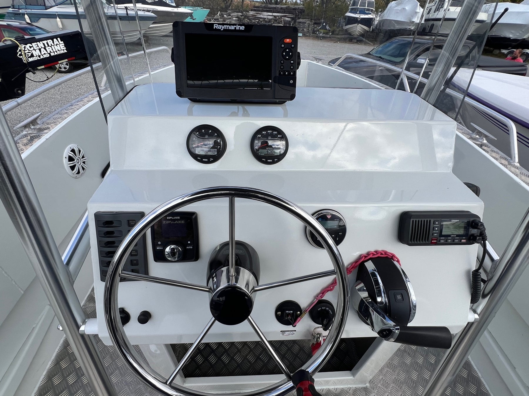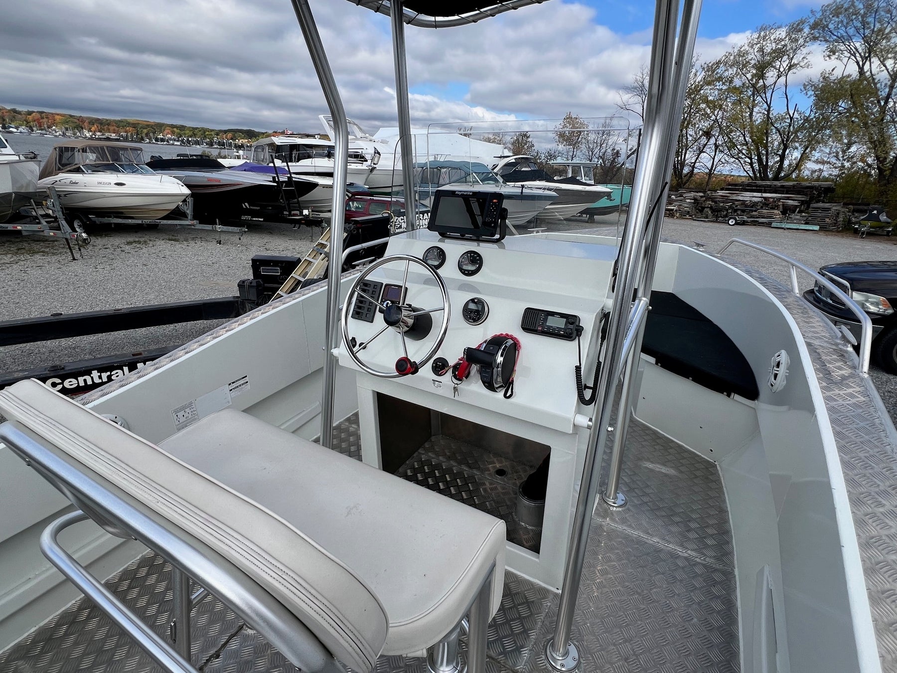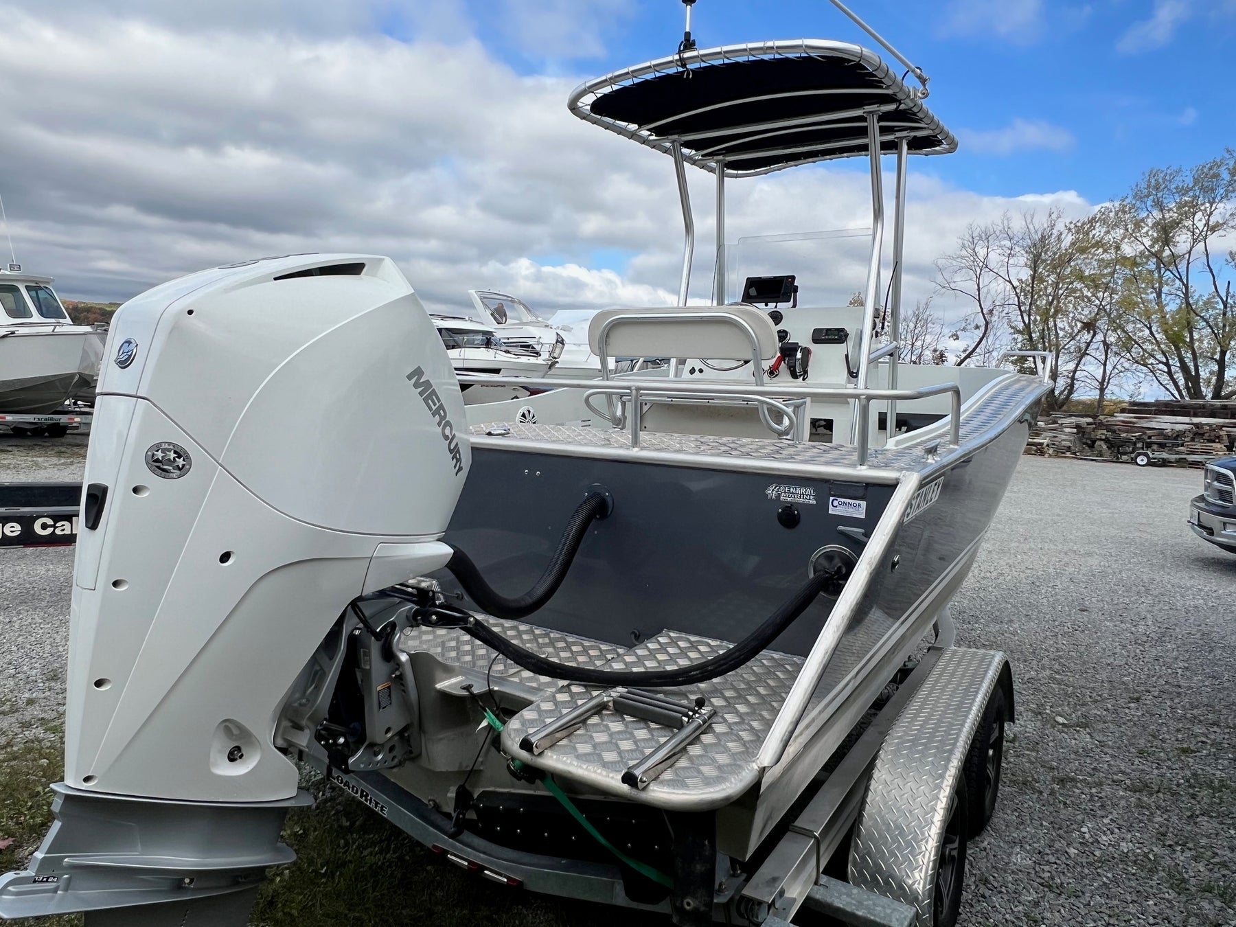 2021 Stanley 20 Sport.Powered by a Mercury 200 with only 76 hours.Equipped with.-Transom walk through-Smart craft gauges-Kicker stereo-Zip wake auto leveling trim tabs-Raymarine gps -VHF radio Includes aluminum load rite trailer.