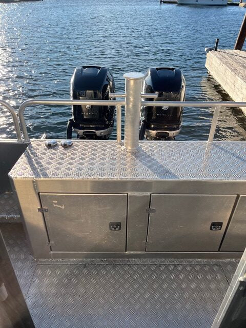This boat is powered with twin 350 Mercury Verados with 477hrs. It comes with vessel view, Raymarine Axiom 9, Auto Pilot, Lenco Trim Tabs, Stereo, Smooth Move Seats, HD Push Knees, Side Mounted Vertical and Horizontal D Rubber and Tow Bollard. One of a kind, call for viewing!